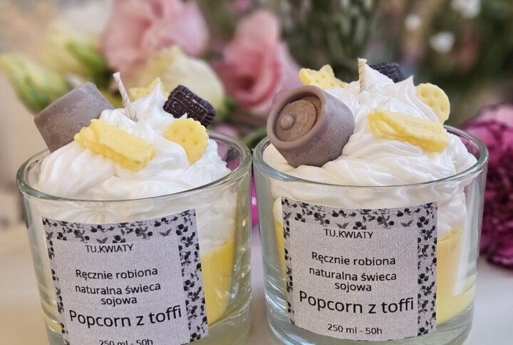 błyszczący akcent, dzięki któremu świeca prezentuje się jak małe, cukierkowe dzieło