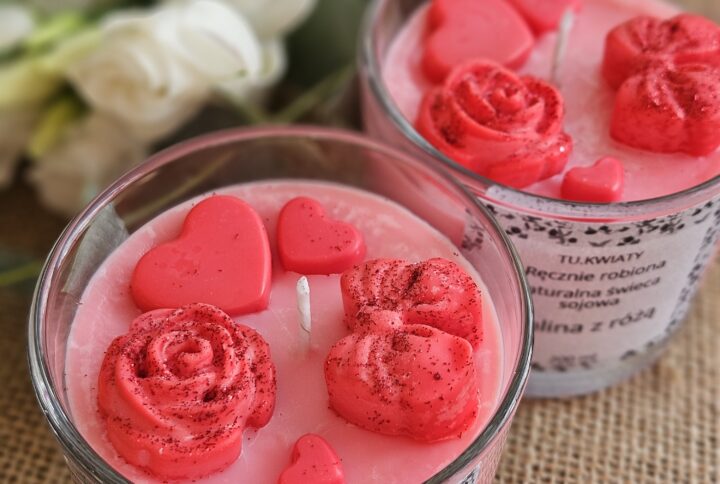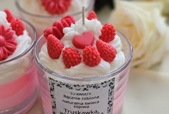 Każda świeca jest ręcznie wykonana w pracowni TU.KWIATY i zdobiona woskowymi