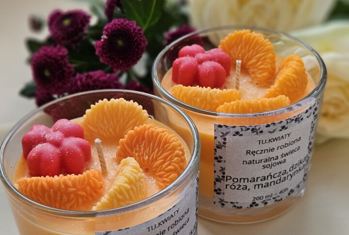 pracowni TU.KWIATY, nadają świecy wyjątkowy wygląd i sprawiają, że stanowi ona